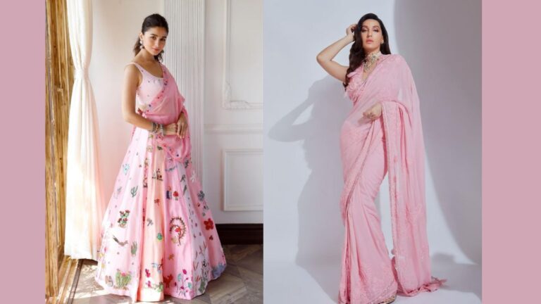 ชุดสีชมพูที่ได้รับแรงบันดาลใจจากดาราบอลลีวูดสำหรับมหานวมิ